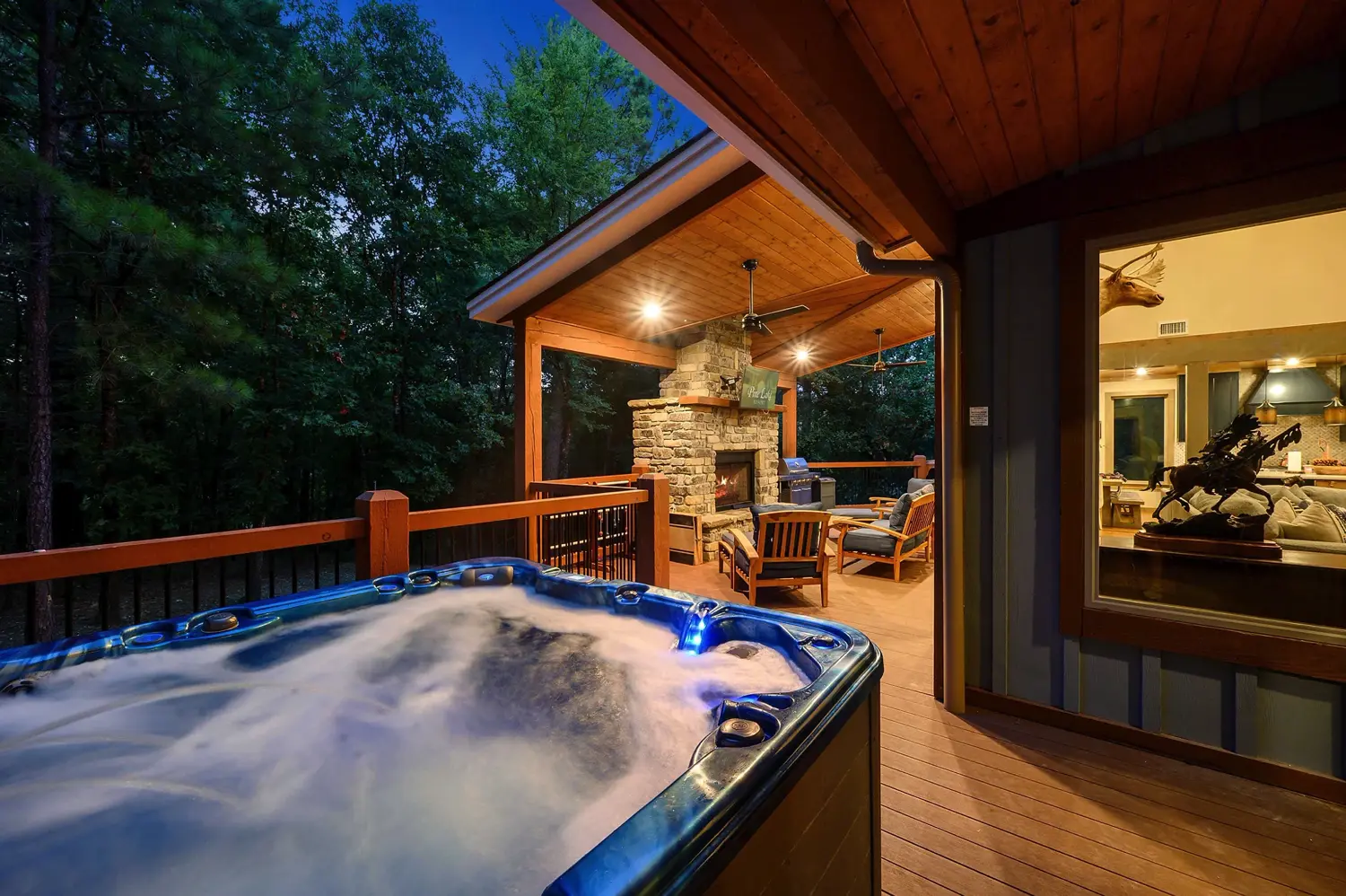Chef's Kitchen, Oversized Fireplace, Six-Person Hot TubDescription