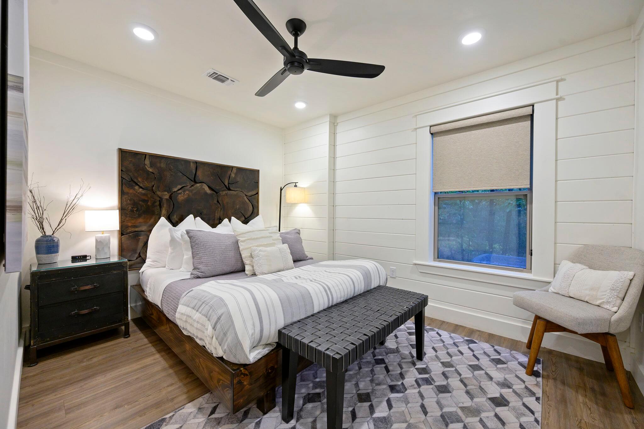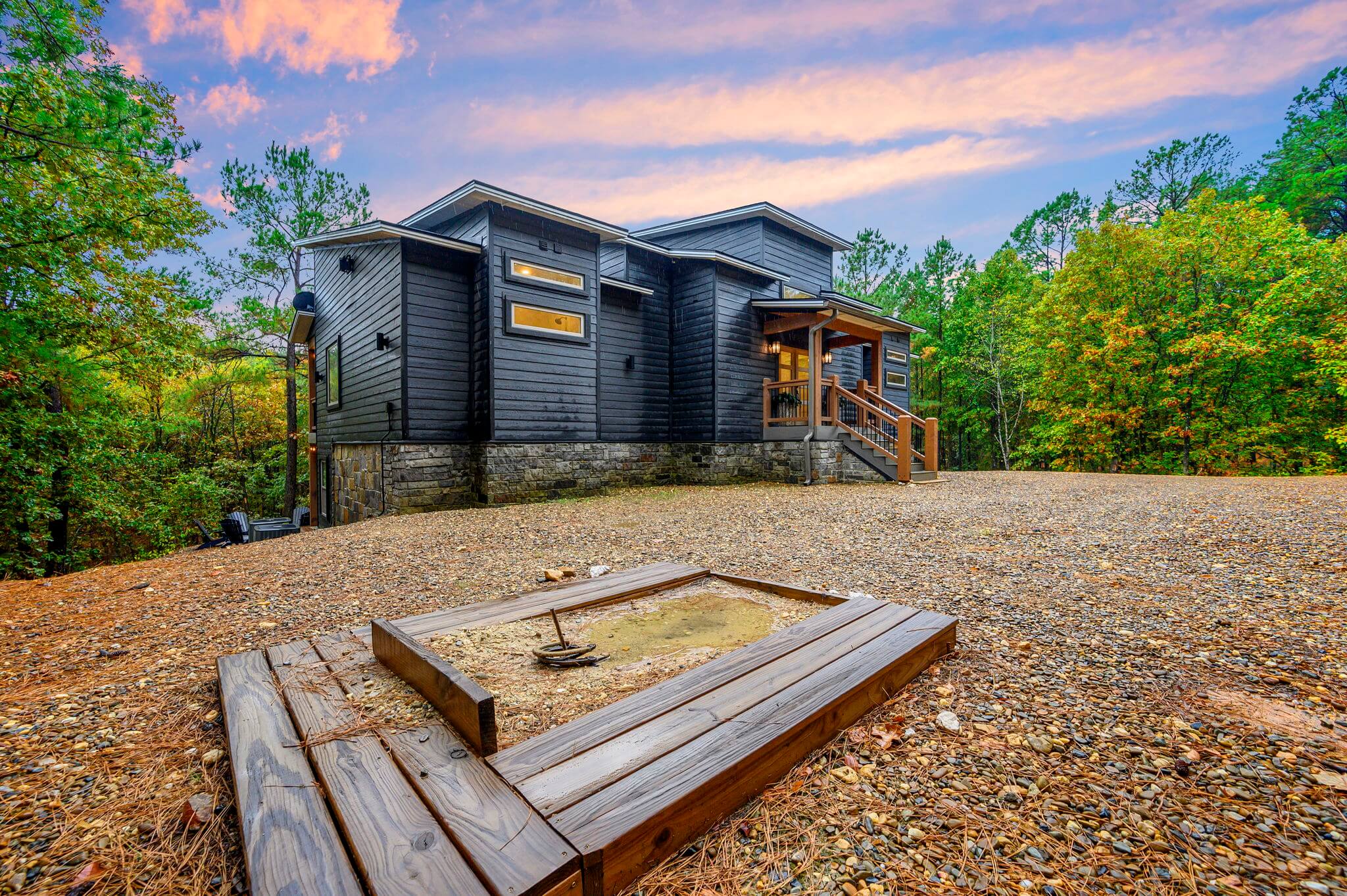 With its custom modern design and colors, Midnight Pines, part of the Broken Branch Properties family at Pine Lake, is the perfect getaway for friends and family to gather and connect, with nothing but the open skies and trees for neighbors. MIDNIGHT PINES IS NOT A PET FRIENDLY HOME.