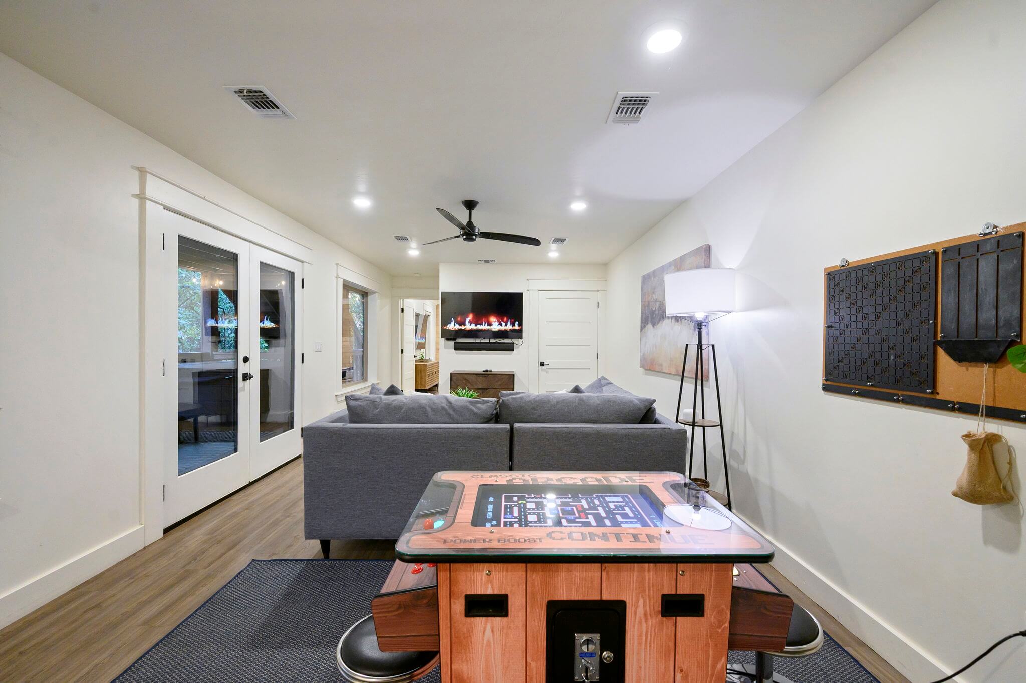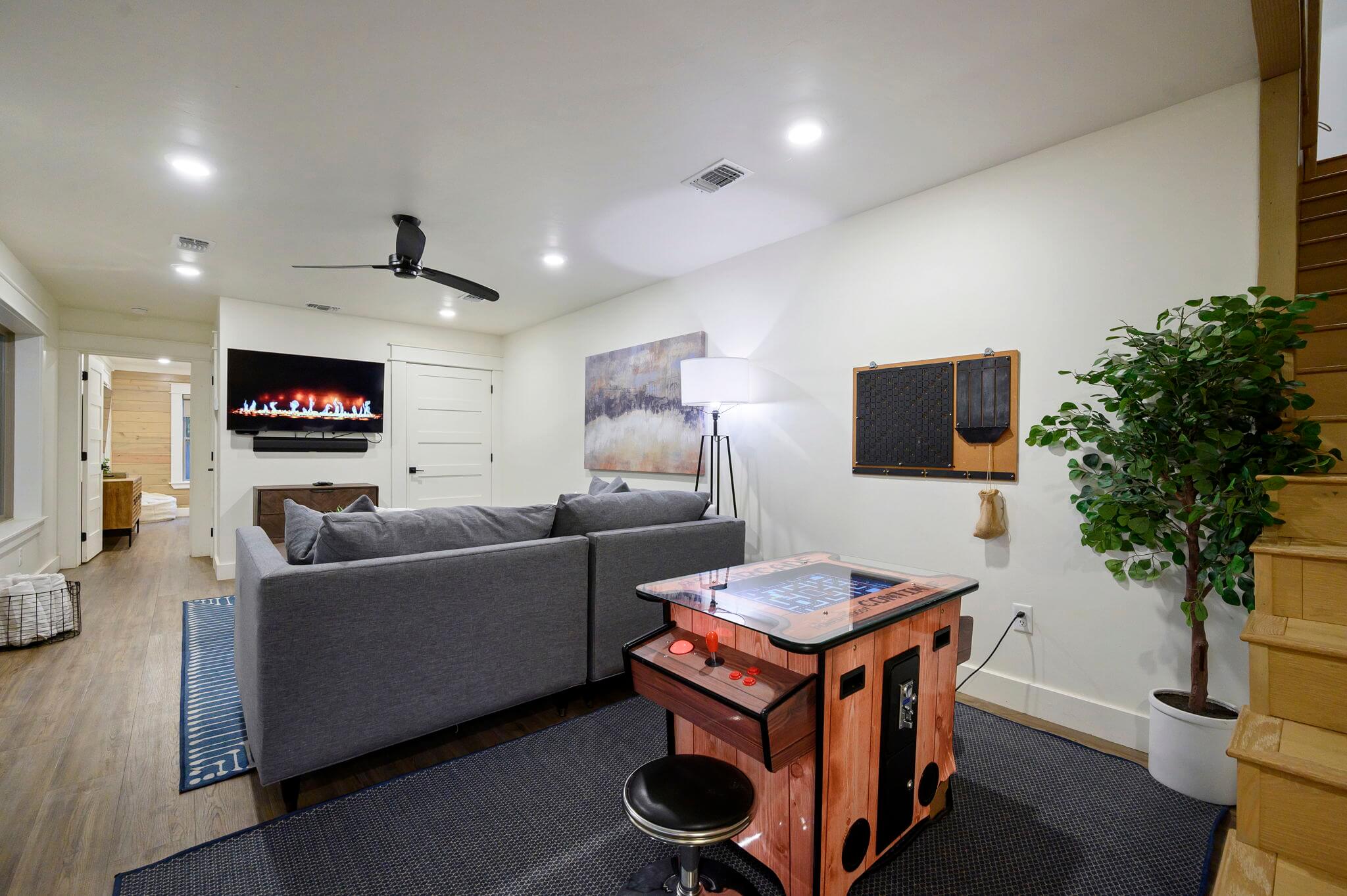 Vintage arcade Table, Breeo Smokeless Grill, Bonus RoomDescription