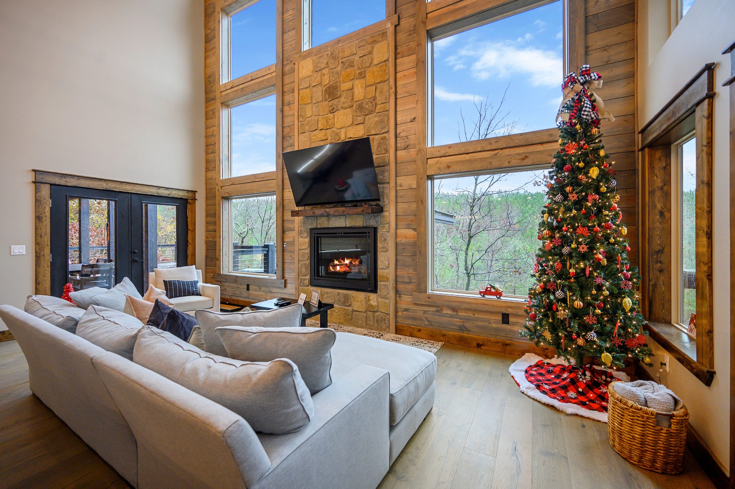 Brand new! The Lookout is a 3 bedroom family-oriented luxury cabin that’s full of fun for all age ranges! Large floor-to-ceiling windows invite you to get outside and enjoy the surrounding private, forested area as well as the exciting outdoor attractions. Take the slide off the deck or swing on the cozy webbed seats of the timber-framed swing set. Indoor games include shuffleboard and a unique scavenger hunt showcasing all the charming things kids can see and play with at The Lookout: Two Nugget® fort-making couches in the third story loft, a reading nook with a secret peek-a-window into the bunk room, a pizzeria under the stairs, and so much more!